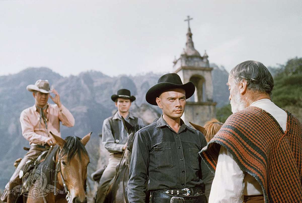 Kurosawa nagy kasszasikere, A hét szamuráj ihlette a westernfilmek manierista korszakának ezt a ragyogó alkotását. A klasszikus hős hét alakra bomlik, s mindegyik magában hordja az eredeti figura valamelyik jellegzetes vonását. Vérbeli vadnyugati történetben ismerjük meg e magányos, büszke cowboyok bátorságát és emberségét. Szinte minden cselekedetük rituálé, megható búcsú egy nagy műfajtól. Közelednek az olasz westernfilmek...